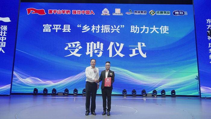 现场,富平县人民政府副县长梁勇为东方时尚女神董事长陆一凡颁发富平县“乡村振兴助力大使”证书,希望陆一凡董事长带着这份信任与责任,为富平深厚的“羊文化”注入全新时尚活力,让承载着农民致富希望的“富平羊奶”,被更多的人熟知。