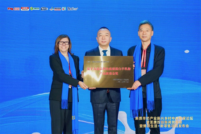 同时,圣唐乳业旗下“秦羊友道”品牌的两款明星产品——无蔗糖羊乳粉与免疫球蛋白羊乳粉,凭借其卓越品质、创新配方与过硬质量,荣获陕西省乳品工业协会颁发的 “产品质量金奖”。这一殊荣,不仅是对圣唐乳业精益求精的制造工艺与严苛质量管控体系的高度肯定,更彰显了圣唐羊奶在健康消费新风尚中的国民地位。