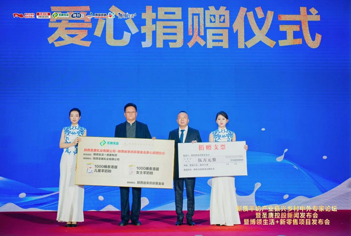 活动现场,陕西圣唐乳业有限公司向陕西省宋庆龄基金会进行了爱心捐赠,其中包括儿童配方羊乳粉、透明质酸钠免疫球蛋白羊乳粉各1000桶,总价值79.6万元,定向支持妇女与儿童群体健康需求。另外圣唐乳业现场捐赠现金5万元,作为成立基金,助力基金会开展妇女与儿童公益项目。
