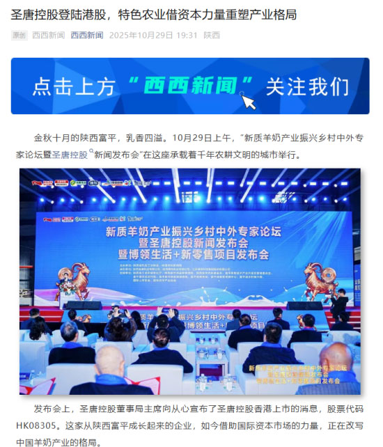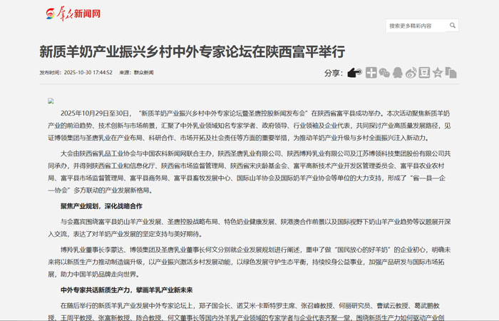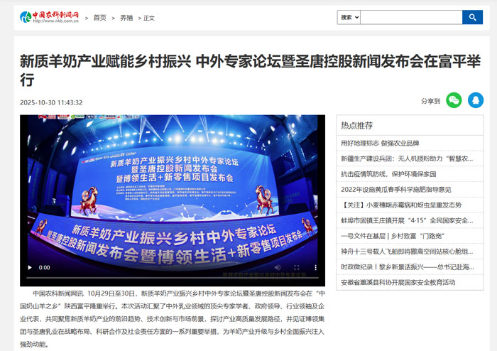 本次会议以新质羊奶产业为锚点,打出了品牌差异化,树立了奶山羊产业新标杆,活动受到中国农科新闻网、中国网、陕西广电(西西新闻)等多家权威媒体竞相报道,引起广泛关注!