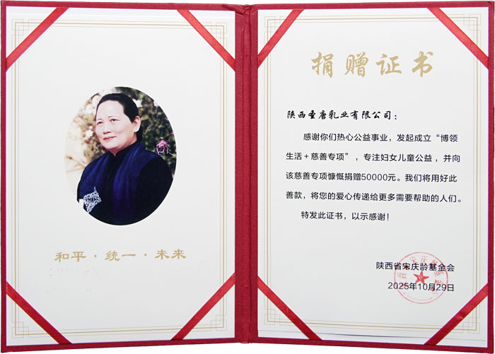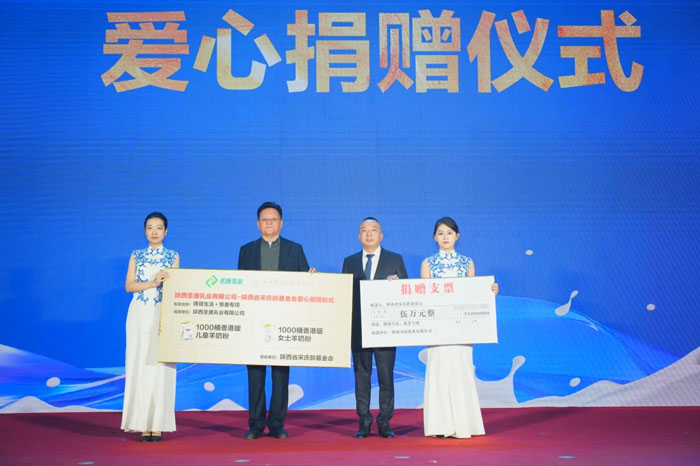 10月29日,“新质羊奶产业振兴乡村中外专家论坛暨圣唐控股新闻发布会暨博领生活+新零售项目发布会”在陕西富平圆满举行。会上,陕西圣唐乳业有限公司向陕西省宋庆龄基金会实施专项爱心捐赠,包括总价值79.6万元的儿童配方羊乳粉与透明质酸钠免疫球蛋白羊乳粉各1000桶,精准定向用于妇女儿童健康保障;同时现场捐赠5万元现金,作为“博领生活+慈善专项”启动资金,持续支持相关公益项目开展。