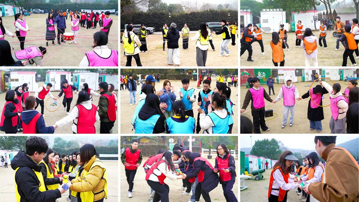 紧接着,“挑战150秒”环节将团队协作推向高潮。活动包含四个极富挑战又紧密相连的子项目——管道传球、呼啦圈过人、击鼓颠球以及激情节拍,四个环节环环相扣,在紧张的150秒内,团队凝心聚力、高效沟通、彼此补位、分秒必争,以实际行动诠释“同心协力,其利断金”。