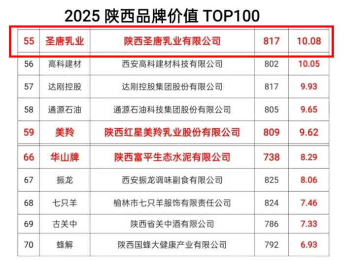 品牌价值作为品牌经济发展和建设过程中的重要标志,是企业综合实力和市场竞争力的重要体现。作为农业产业化国家重点龙头企业,圣唐乳业深耕羊乳产业多年,以全产品链赋能全产业链,携手西北农林科技大学、江南大学等高校学府,共同研发出契合不同人群健康需求的羊奶产品,以科技力量赋能营养升级。未来,圣唐乳业将继续通过对生产环境的严格把控、科技研发的持续投入以及市场服务的不断优化,来赢得广大消费者的信赖与口碑。