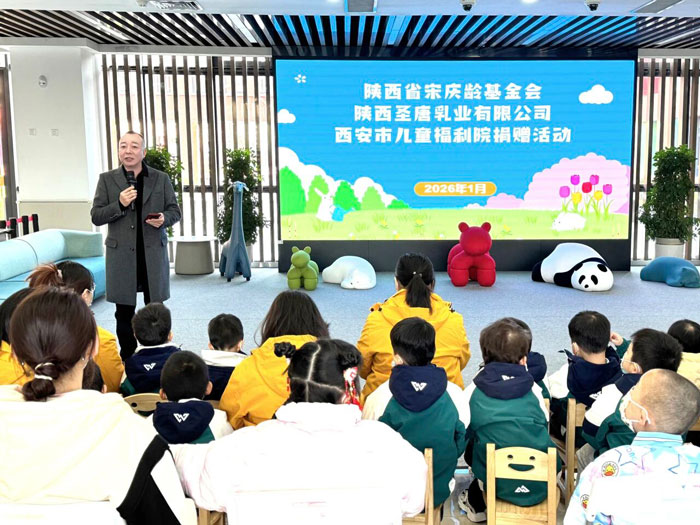博领集团、陕西圣唐乳业有限公司董事长何文,应陕西省宋庆龄基金会主席李晓东的邀请,于2026年1月9日与陕西分公司总经理张颖斌、运营总监仵涛、西北运营中心运营总监彭伟、西安市场负责人董芳玲一行,前往西安市儿童福利院开展新春“送温暖”活动;陕西省宋庆龄基金会副主席张林忠、秘书长张晓凡,西安市民政局副局长苏杉、儿童处处长徐永娣一起参加活动;西安市儿童福利院党总支书记高健主持,共同为福利院的孩子们和辛勤付出的一线员工送去真挚的慰问与美好的新春祝福。