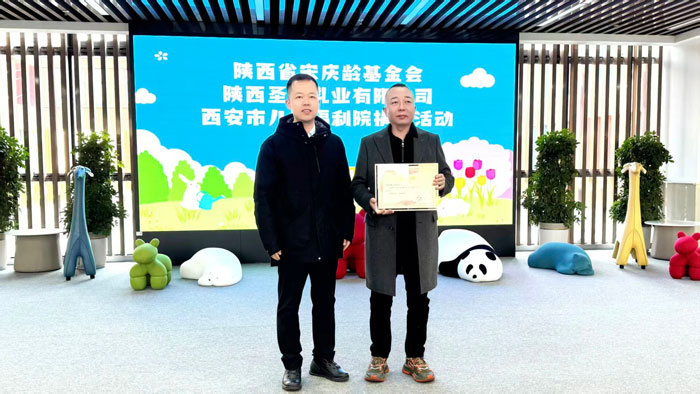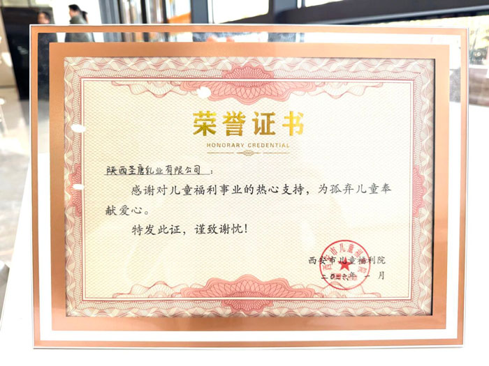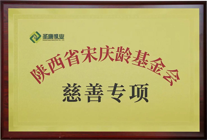 活动最后,西安市民政局副局长苏杉为陕西圣唐乳业有限公司颁发荣誉证书。
