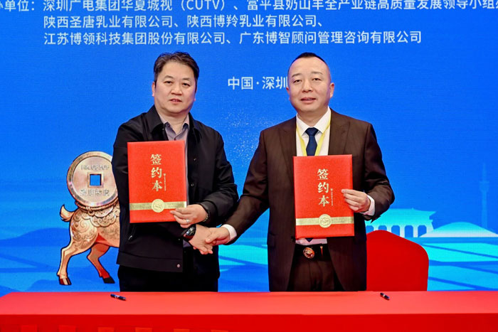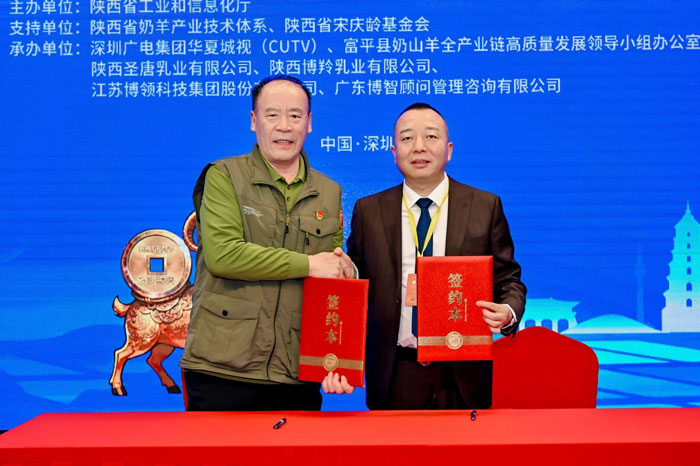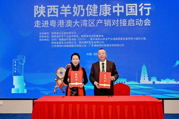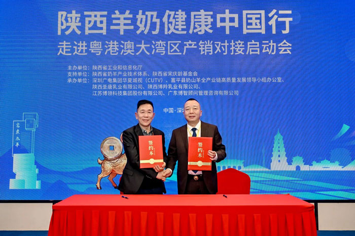 1月24日,由陕西省工业和信息化厅主办,深圳广电集团华夏城视(CUTV)、富平县奶山羊产业领导小组、陕西圣唐乳业有限公司、陕西博羚乳业有限公司、广东博智顾问管理咨询有限公司共同承办的“陕西羊奶健康中国行走进粤港澳大湾区产销对接启动会”在深圳成功举办。作为富平山羊奶标杆企业与中国羊乳领军企业,博领集团、圣唐乳业、博羚乳业积极响应区域协同发展号召,深度参与大湾区产销对接活动,以优质产品为桥、以产业合作为纽,推动陕西羊乳产业与大湾区市场资源精准对接,为中国羊乳产业的高质量发展注入持续动能。
